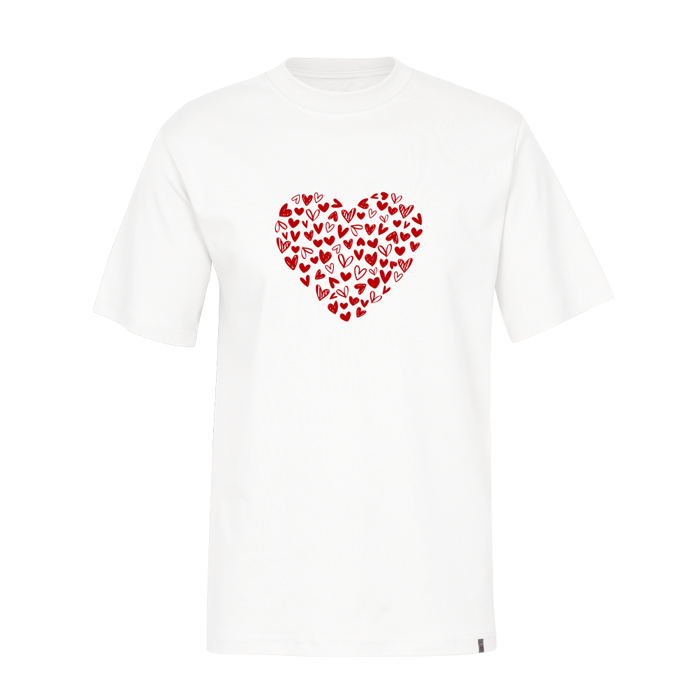 تیشرت چاپی قلبهای عاشق، این تیشرت با طراحی منحصر به فرد از قلبهای کوچک و بزرگ قرمز که در قالب یک قلب بزرگ تجمیع شدهاند، نمادی از عشق و محبت است. با چاپی خاص و ساده، برای کسانی که میخواهند احساسات خود را به شیوهای جذاب و هنری بیان کنند، انتخابی عالی است.