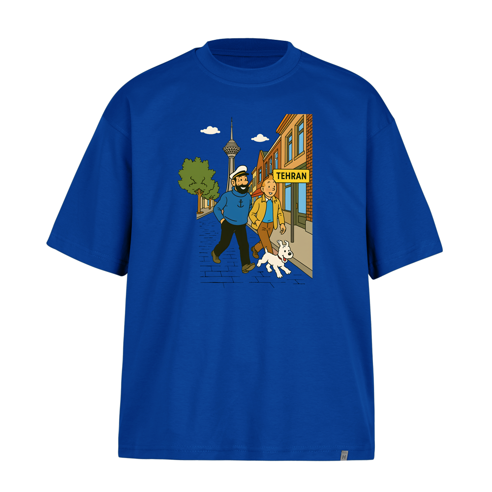 تیشرت باکسی تنتن در تهران از برند بلوتیشرت، ترکیبی منحصربهفرد از نوستالژی و هویت شهری است. چاپ اختصاصی تنتن، کاپیتان و اسنوی در خیابانهای تهران با پسزمینهی برج میلاد، این طرح را به یکی از خاصترین مدلهای مجموعه تبدیل کرده است. جنس پنبه ضخیم نرم و فرم باکسی آزاد، حس راحتی و استایل مدرن را همزمان به همراه دارد.
